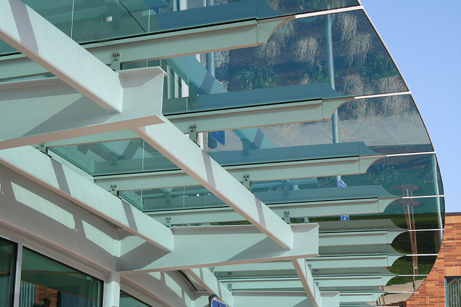 Temperli veya lamine cam ile üretilen kanopi sistemleri, rüzgar ve darbelere karşı yüksek dayanıklılık gösterir. Paslanmaz çelik taşıyıcılar, özel bağlantı elemanları ve kaliteli camlar sayesinde uzun ömürlü ve güvenli bir dış cephe çözümüdür.